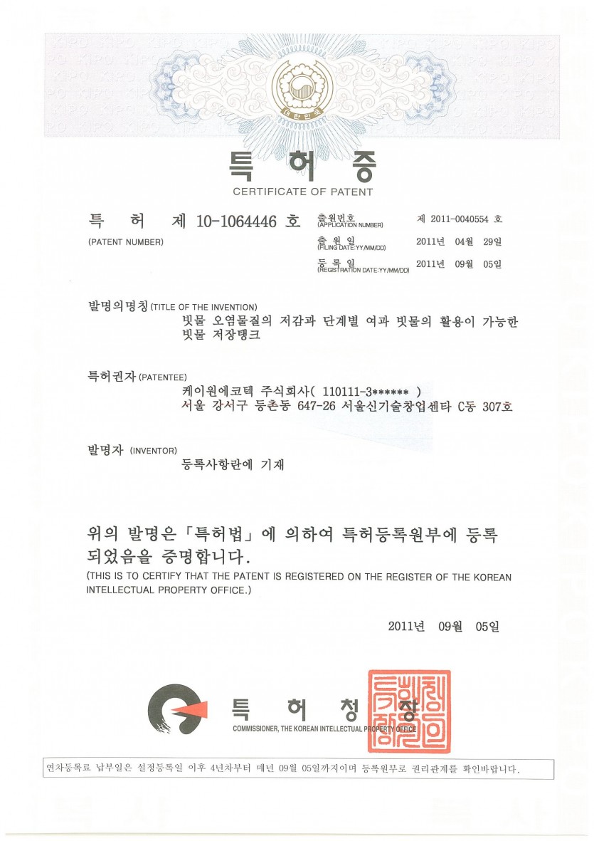 HOME > 회사정보 > 주요 여과기술 특허증 및 인증서