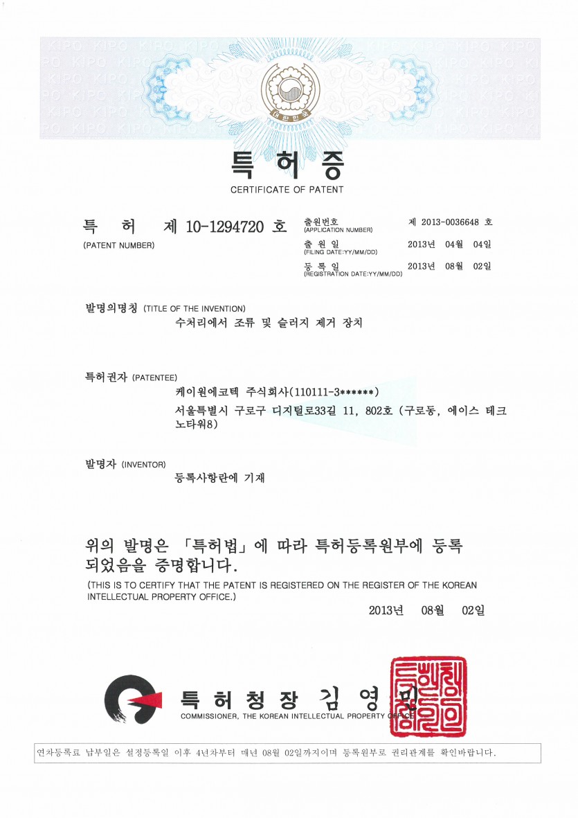 HOME > 회사정보 > 주요 여과기술 특허증 및 인증서